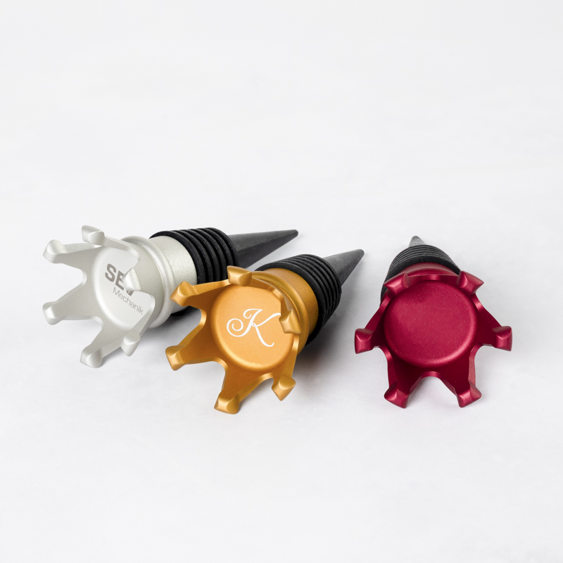 Unser Flaschenverschluss aus Aluminium verbindet hochwertiges Handwerk mit stilvollem Design. CNC-gefertigt, robust und angenehm in der Hand, verschliesst er Wein-, Sekt- oder Ölflaschen zuverlässig und ohne Qualitätsverlust. Der Weinstopfen sorgt für einen dichten Sitz, damit Genuss einfach länger hält.